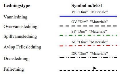 Norm for VA-ledningskartverk (1993) er gammel, men god. Her finnes blant annet standarder for punktsymboler, streksymboler og fargebruk.
